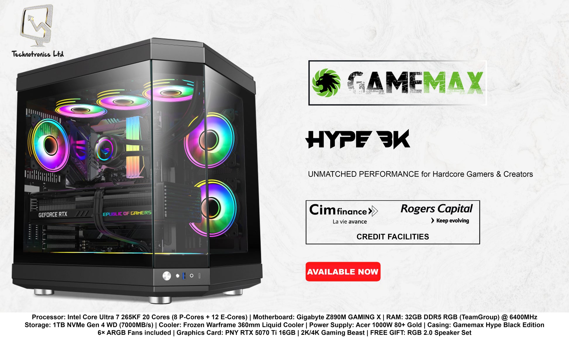 ๐ท๏ธ #TechnotronicsLtd #GamingPC #RTX5070Ti #CoreUltra #MauritiusGaming #PCBuild #HypeBlackEdition