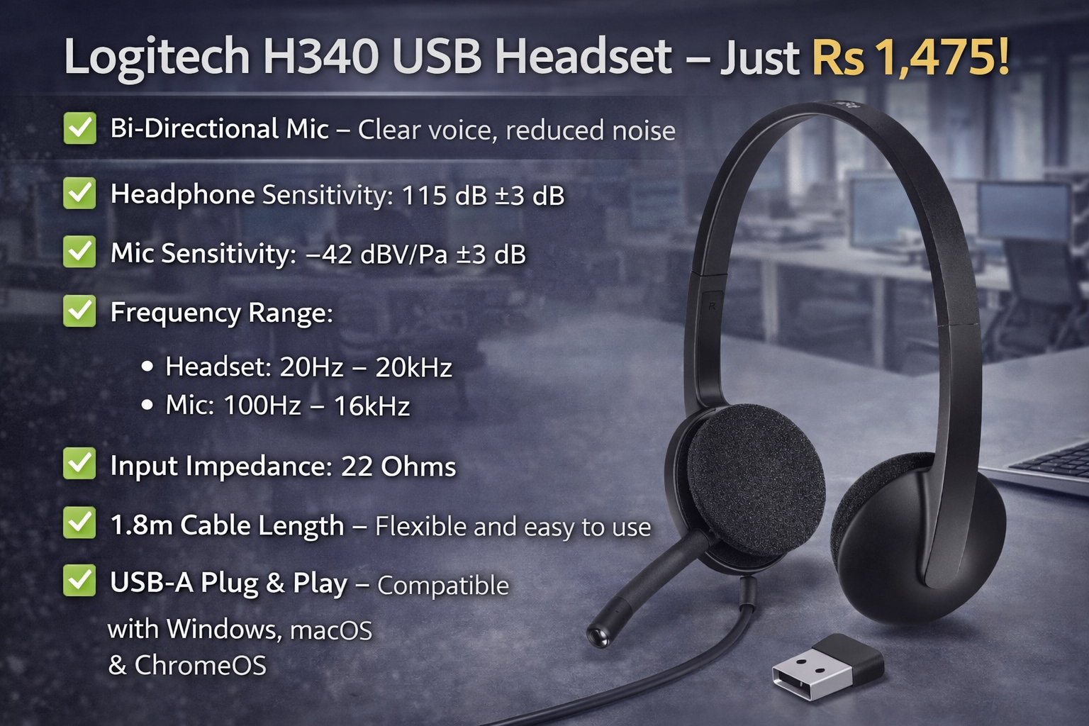 π§πΌ Logitech H340 USB Headset β Just Rs 1,475!
